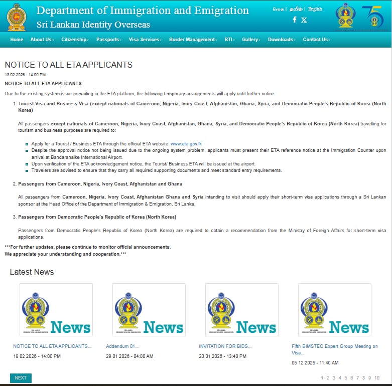 Special Notice for All ETA Applicants (18.02.2026 at 14.00 pm)